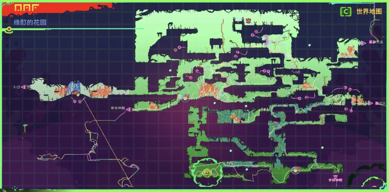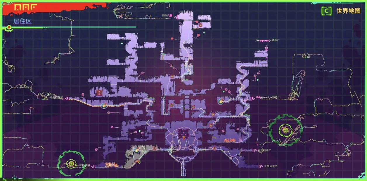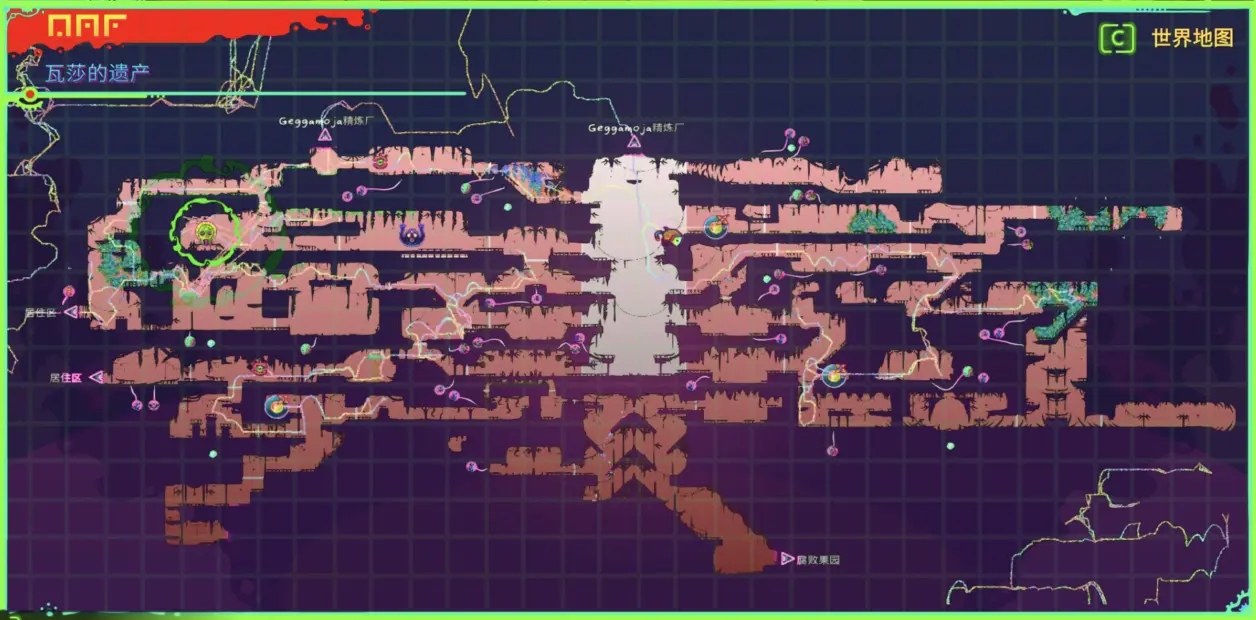 全地图建议在打完结局后,解锁所有基础分离器功能以及技能(优先解锁二段跳、蹬墙跳、投掷瞄准、自动回血、掩盖气息、追踪花园、追踪生物)后再慢慢探索。