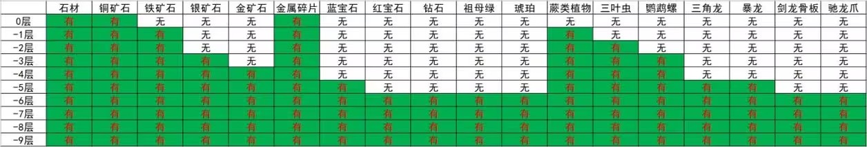 -6~-9层:钻石、红宝石、祖母绿、琥珀、剑龙骨板、驰龙爪