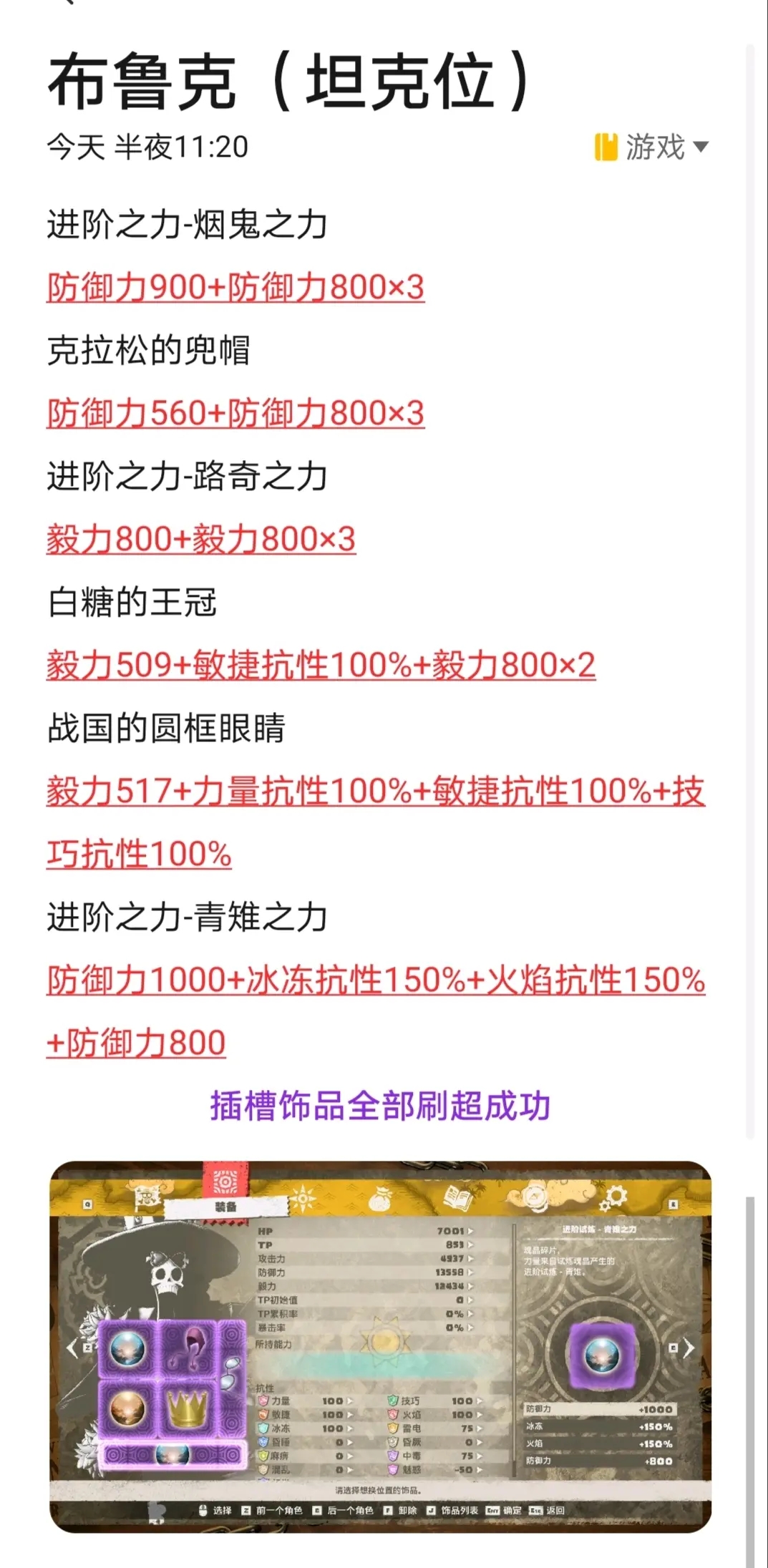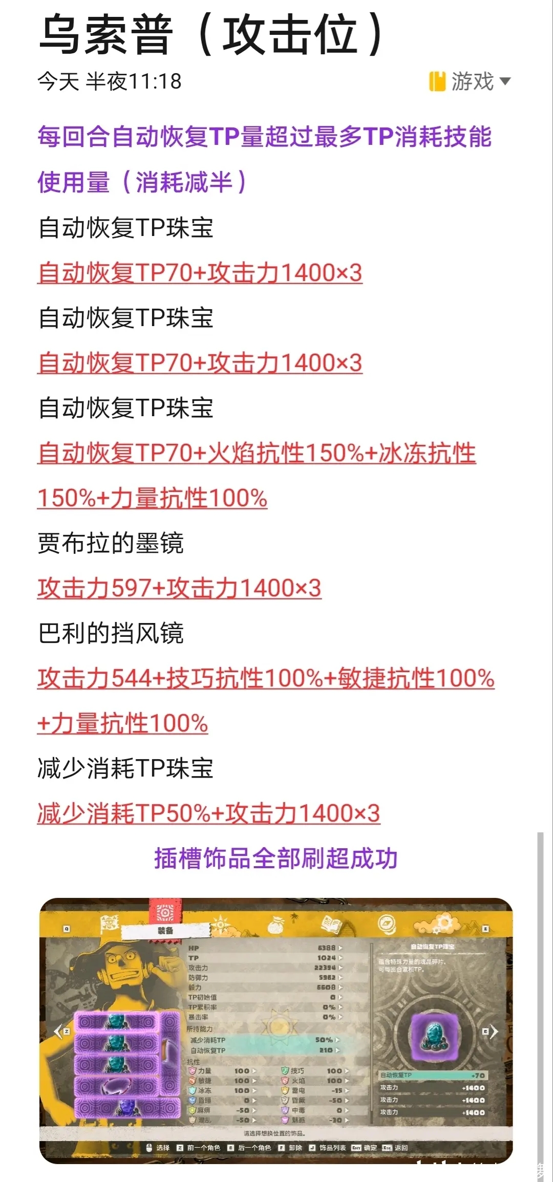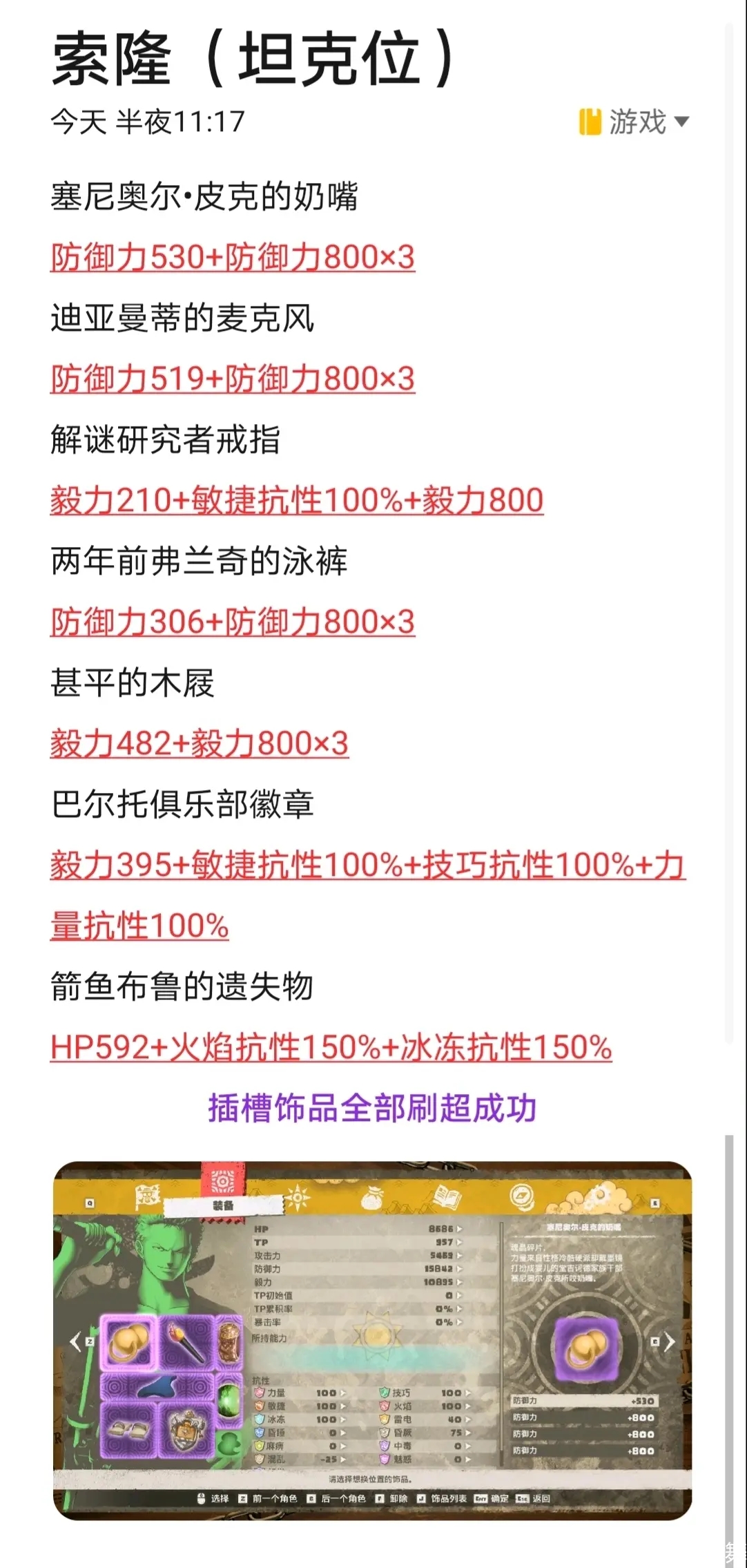 7.乔巴除了塞各种抗性外,多余的孔全拉满毅力;