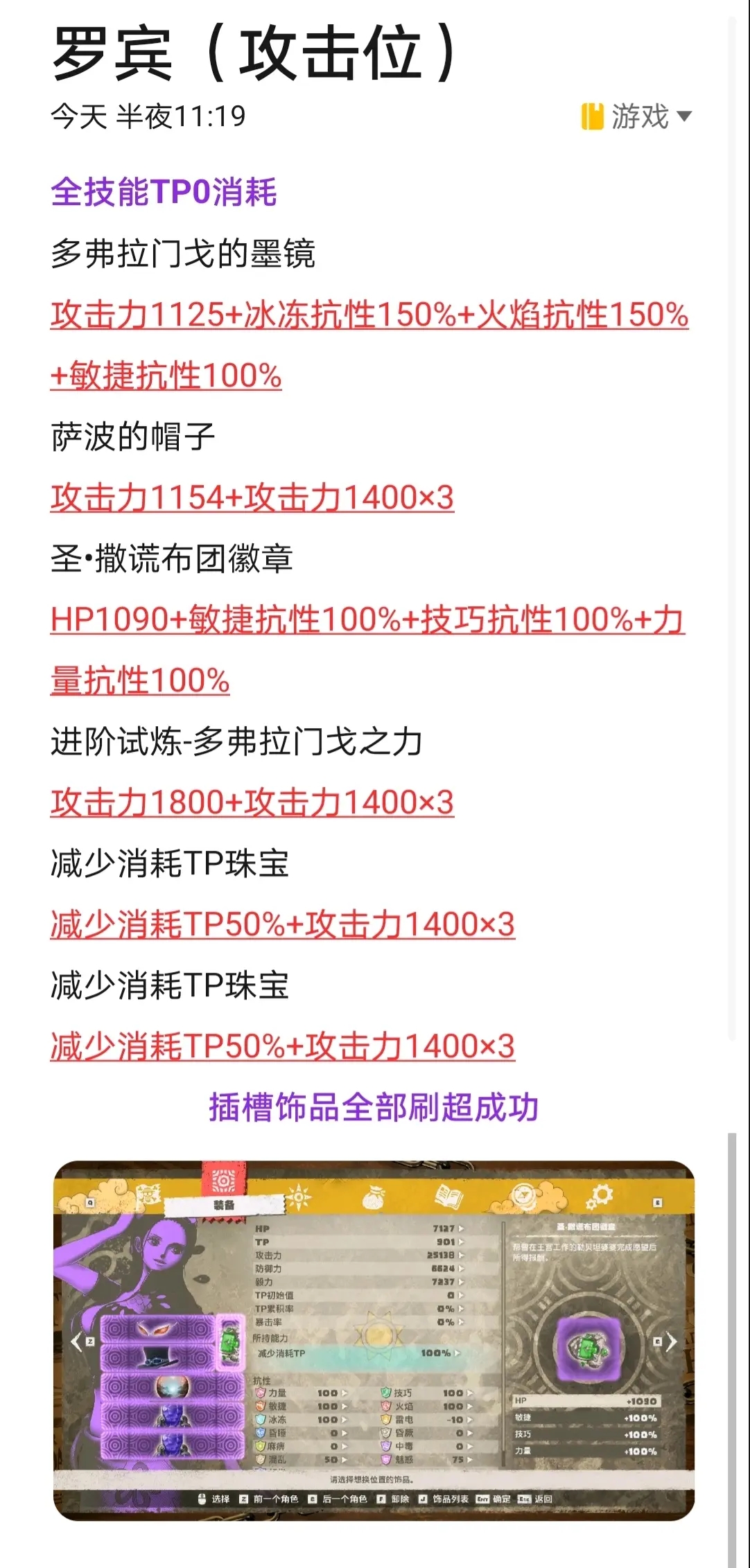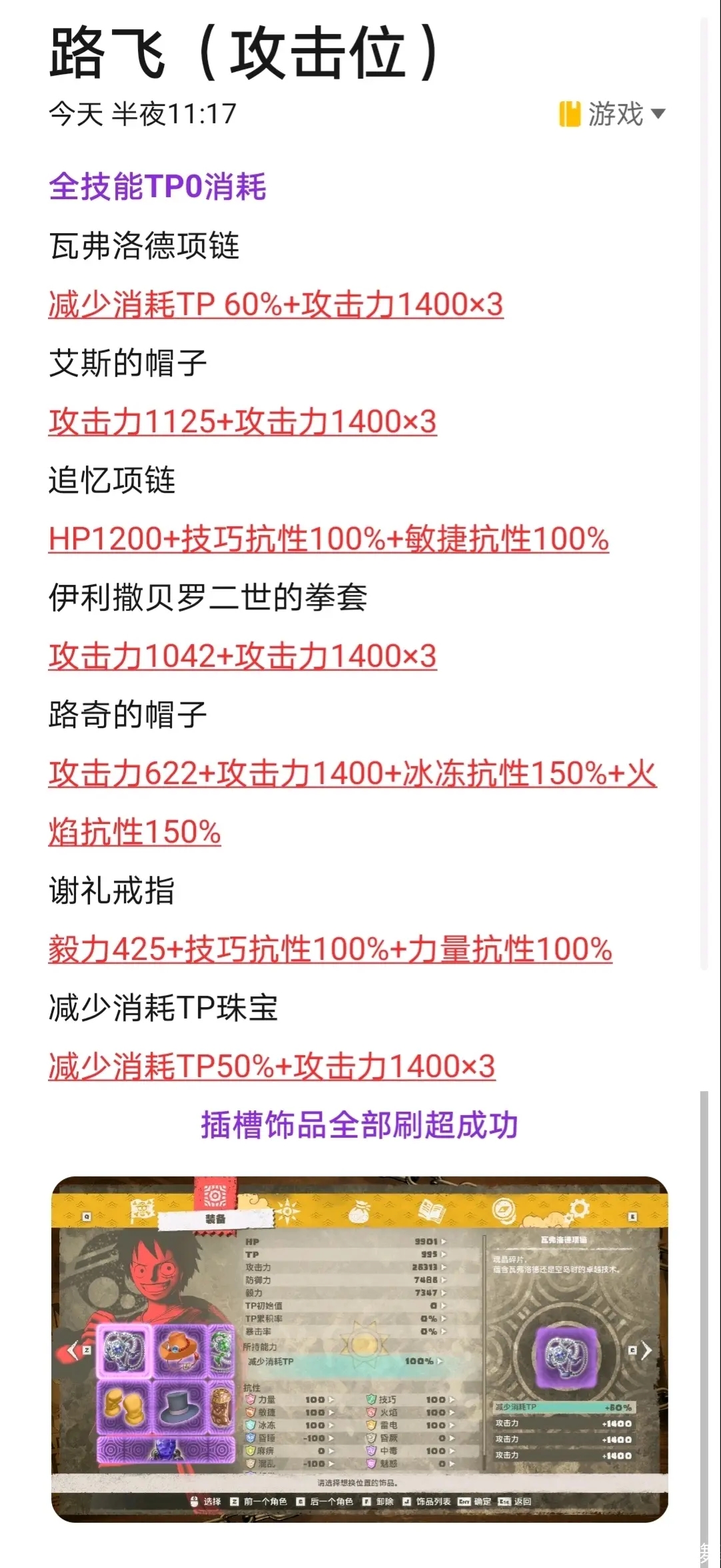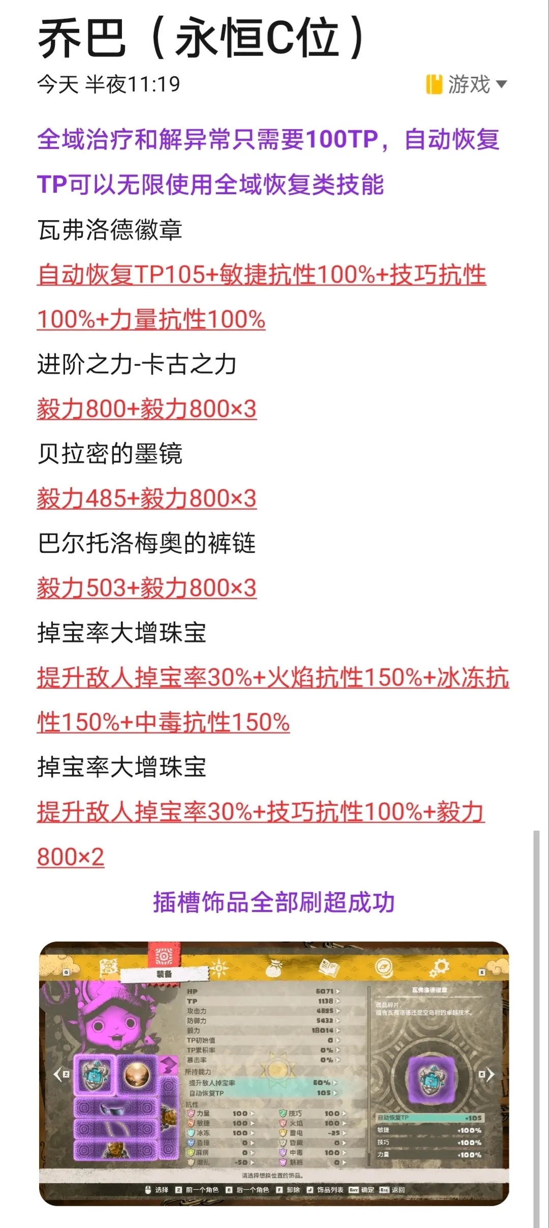 7.乔巴除了塞各种抗性外,多余的孔全拉满毅力;
